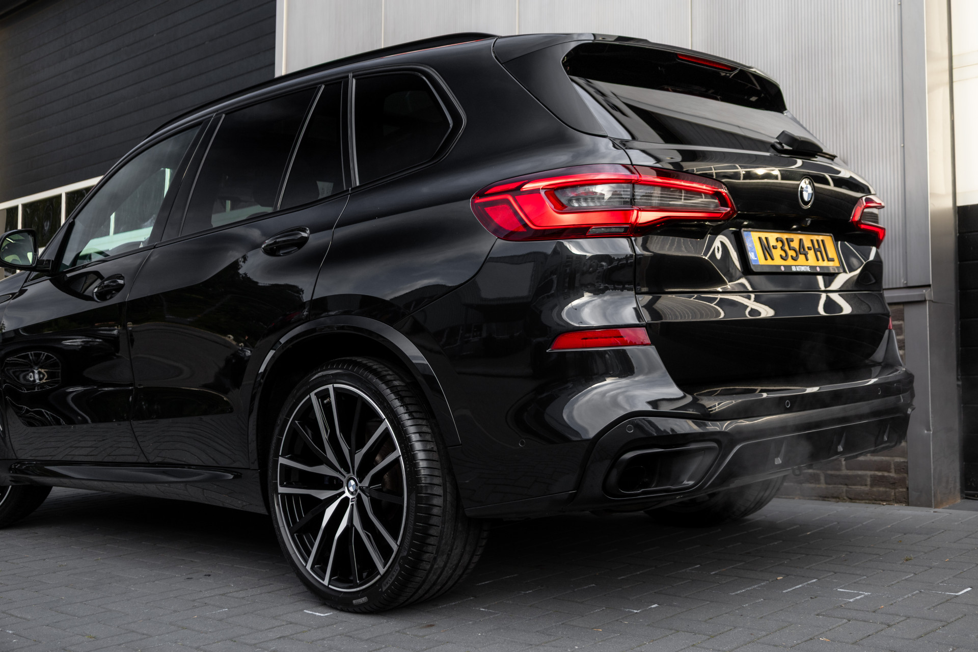 In de prachtige BMW kleur Black Saphire Metallic uitvoerde BMW X5 4.0i M-Sportpakket!