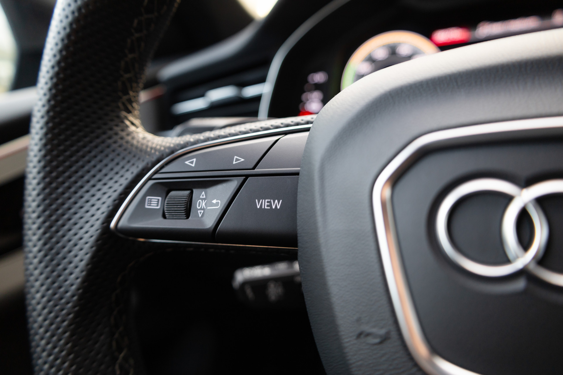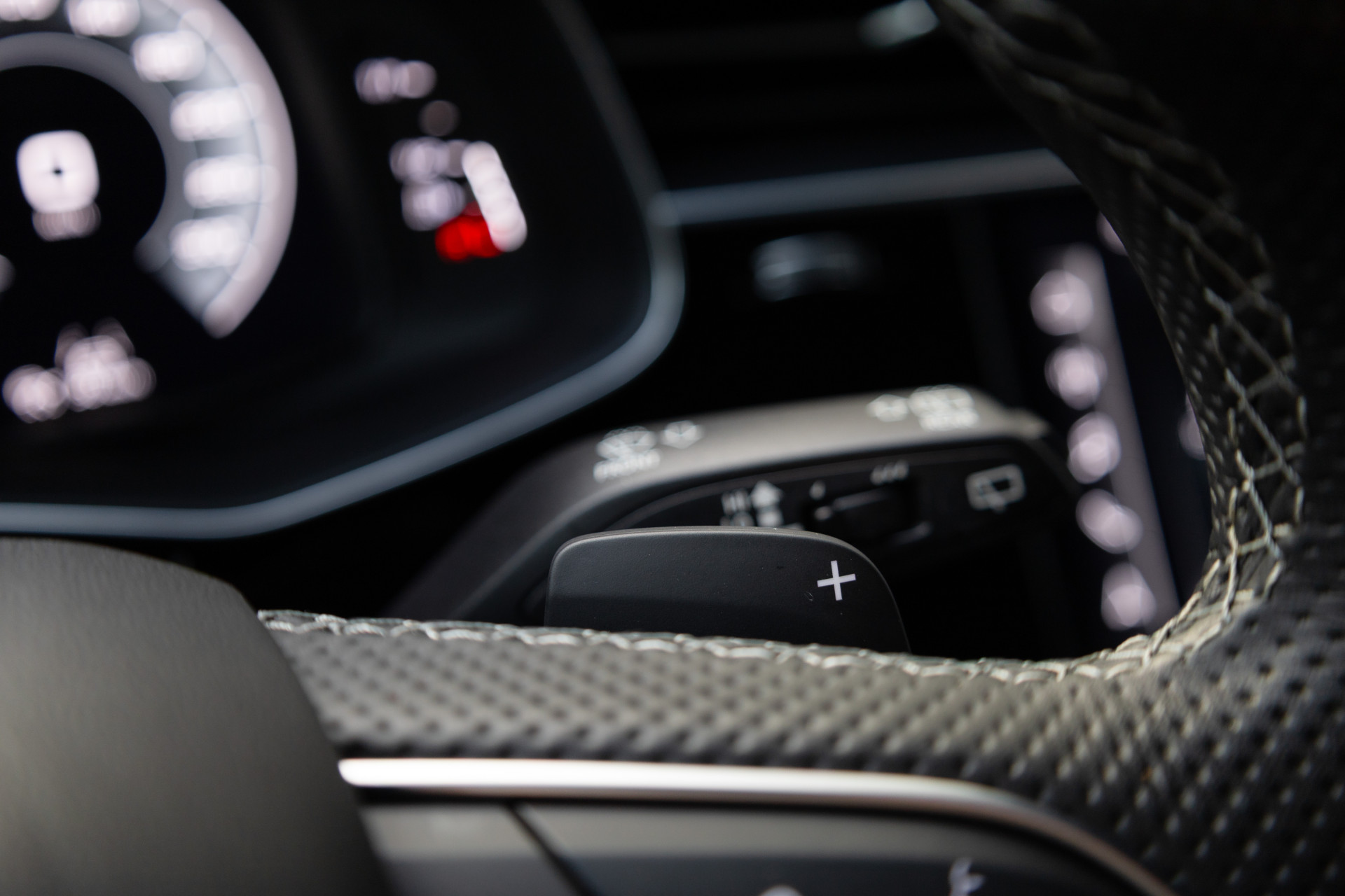 - Sportstuurwiel, driespaaks multifunctioneel in leder met schakelpaddels, verwarmbaar